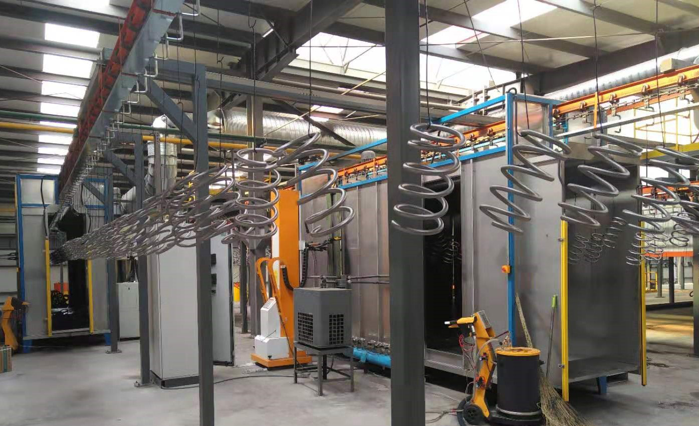 Coil Spring Shot Peening, press, painting