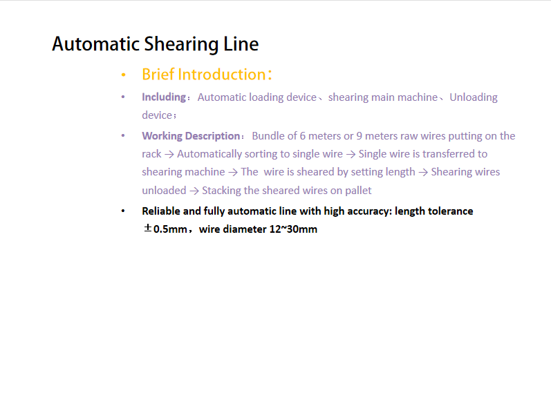 Reliable and fully automatic line with high accuracy: length tolerance ±0.5mm,wire diameter 12~30mm